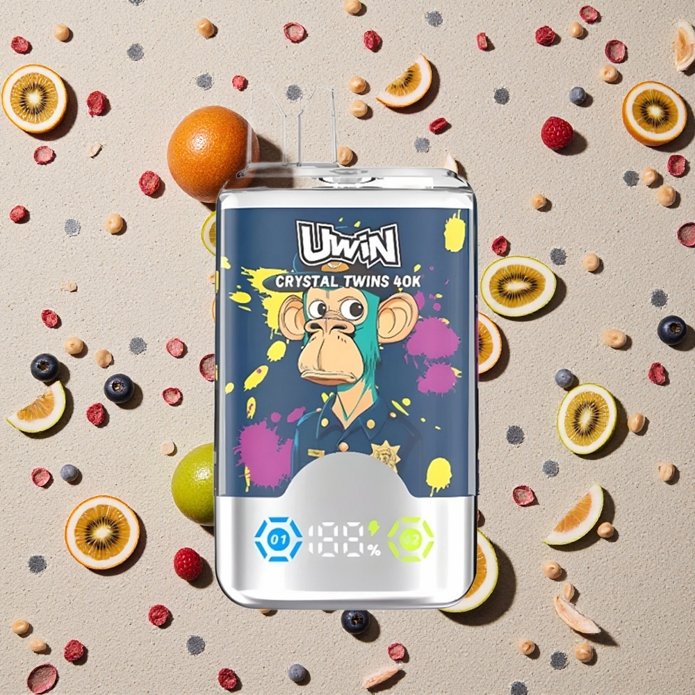 UWIN Crystal Twins 40000 Puffs Saldskābā Ķirša un Aveņu Dispozitīvais Veips ar 32ml e-šķidruma ietilpību un 850mAh bateriju