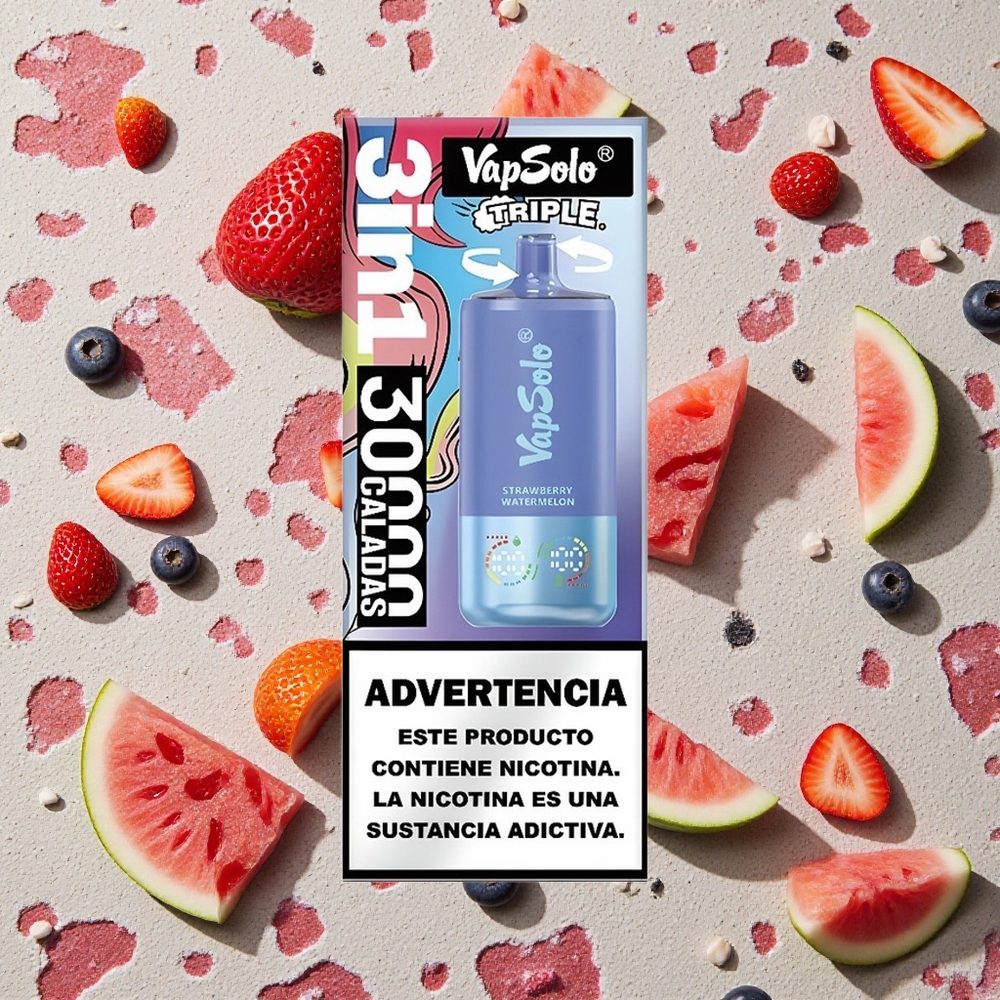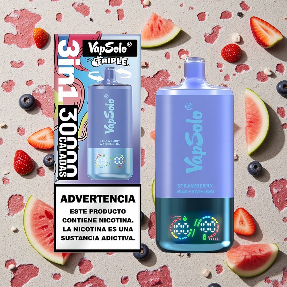 VapSolo Triple 30000 Puffs Zemeņu Arbūzs & Zilenes Ledus Vienreizējās lietošanas vape 40ml E-Liquid Type-C