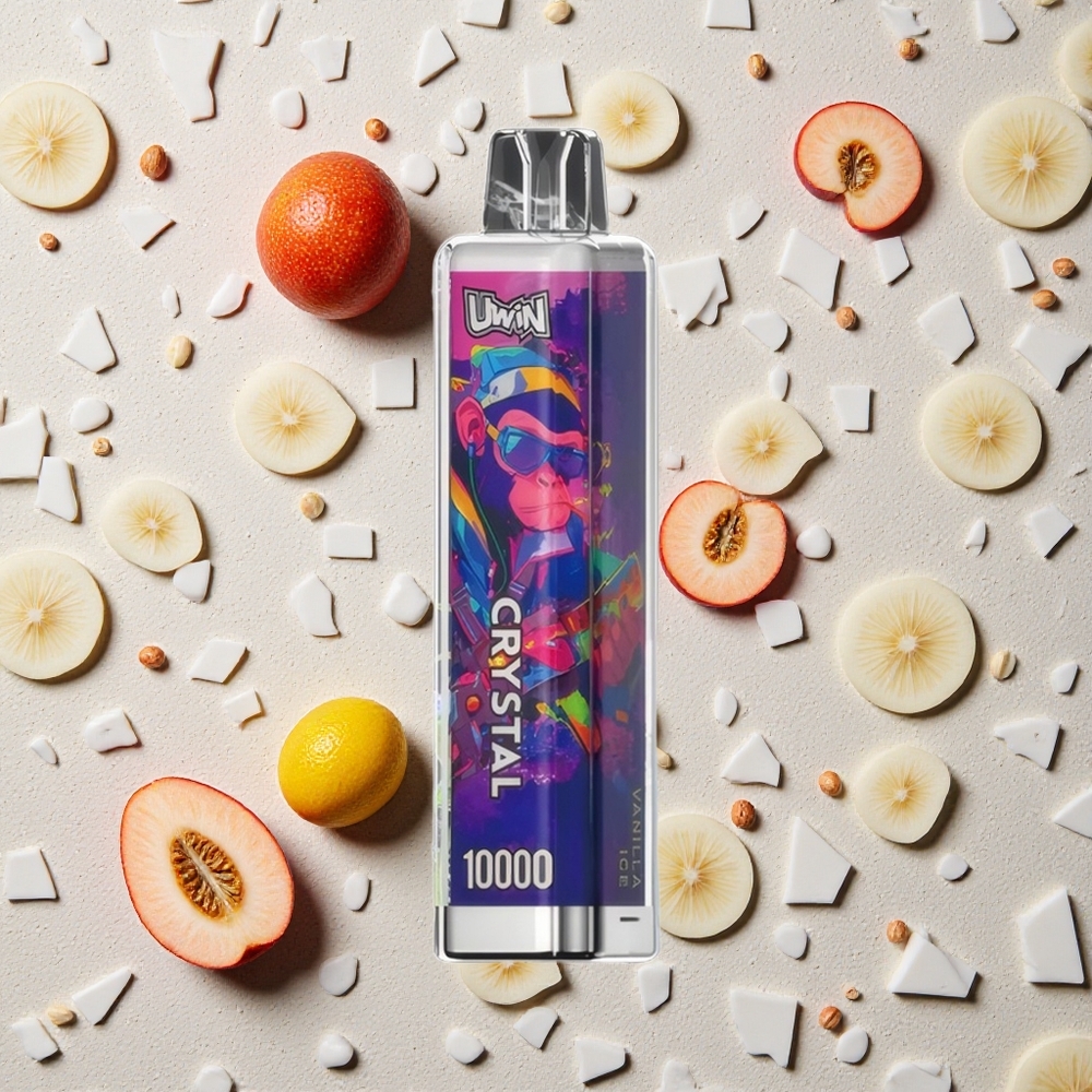 Uwin Crystal 10000 Puffs Vienreizējās lietošanas vape Vaniļas Ledus ar RGB Gaismu un 18ml E-Šķidruma Ietilpību
