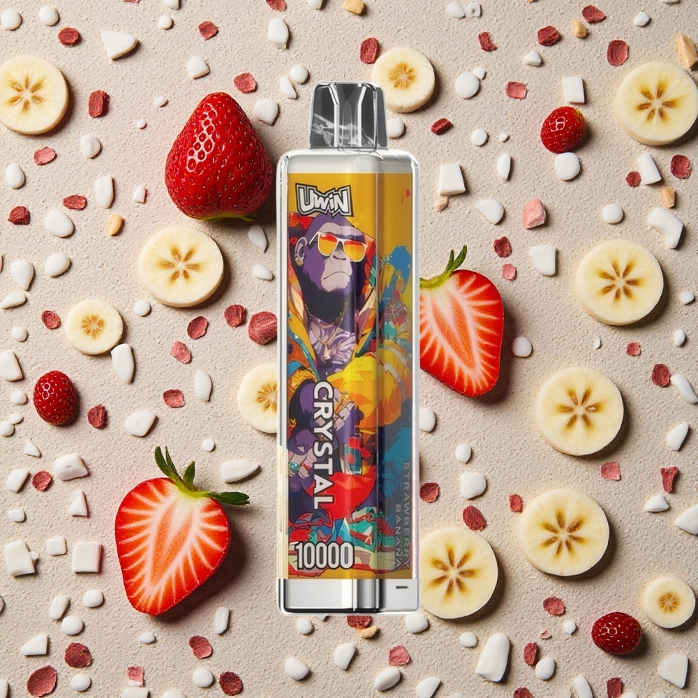 UWIN Crystal 10000 Puffs Zemenu Banānu Dispozitīvais Vape ar RGB Gaismām un 18ml EŠķidruma Ietilpību