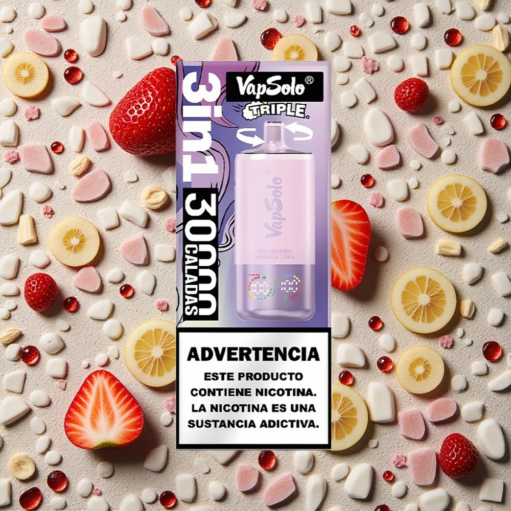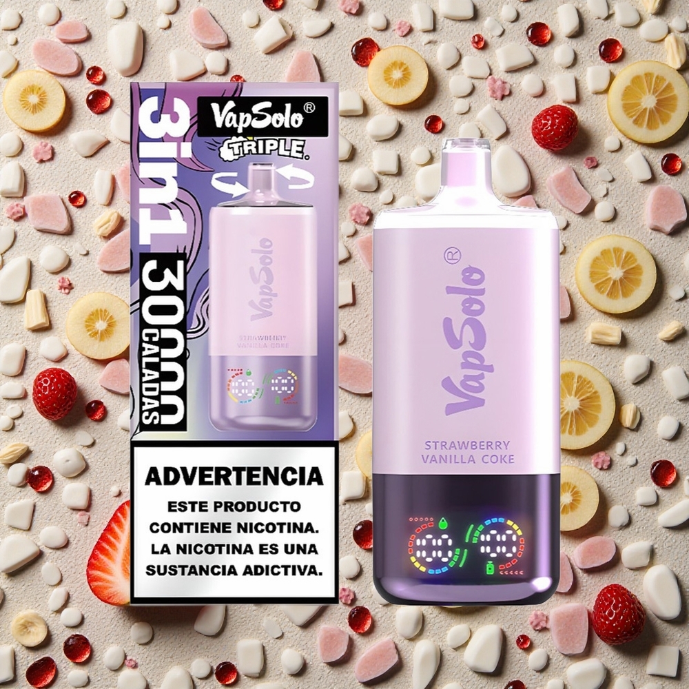 VapSolo Triple 30000 Puffs 40ml Zemeņu Vanilass Koka Vienreizējās lietošanas vape