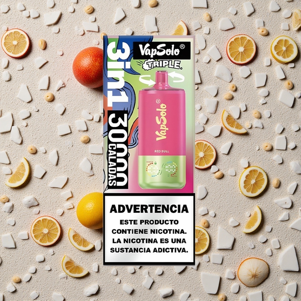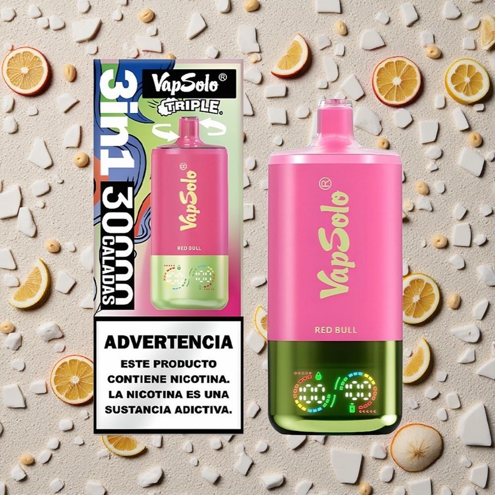 VapSolo Triple 30000 Puffs Vienreizējās lietošanas vape Sarkanā Vērša (47x47x115mm, 40ml)