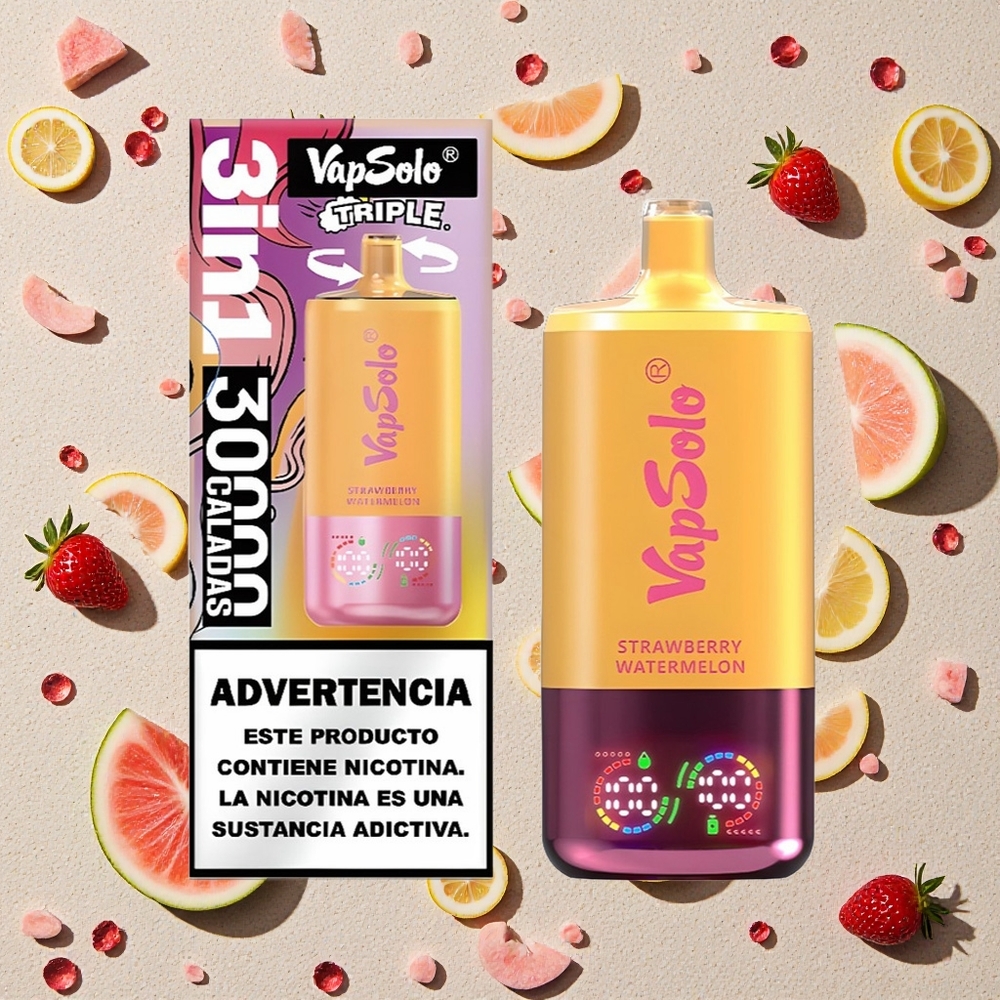 VapSolo Triple 30000 Puffs Zemene Arbūzs & Citronpersiks ar 40ml E-Šķidruma un Type-C Uzlādi